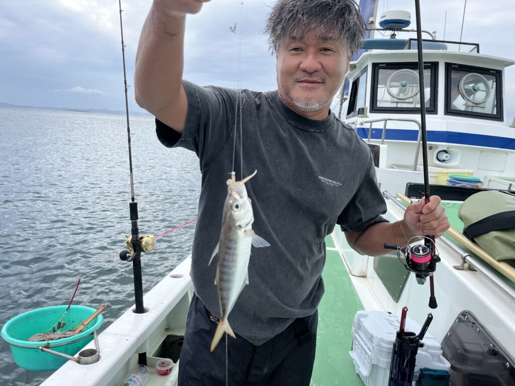 子供さんもいたのでお昼までイカリを入れてのんびりやって20㎝前後のアジ、午後から良型狙いで場所替え何匹か釣って沖上がりしました。